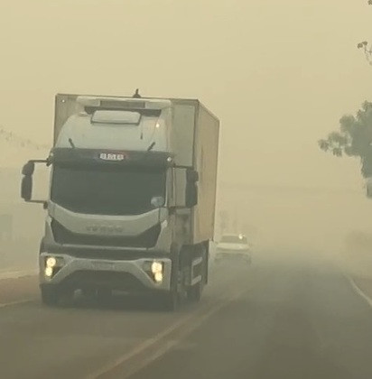Em vídeo gravado que circula nas redes sociais, um morador mostra a cidade toda coberta pela fumaça. Contudo, o Corpo de Bombeiros informou que o incêndio que atingia a cidade foi extinto. A situação coloca em risco à saúde da população.