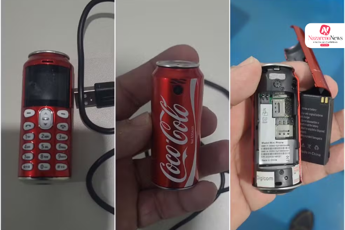 Um celular no formato de uma mini lata de Coca-Cola foi apreendido no Centro de Detenção Provisória de Juína, a 737 km de Cuiabá, nessa terça-feira (16). Segundo a Secretaria Estadual de Justiça de Mato Grosso (Sejus-MT), o aparelho estava escondido em uma das celas do CDP e foi encontrado por policiais penais durante vistoria.