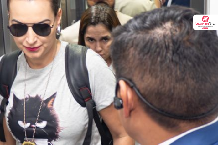 Imagem mostra Aline Valandro Kounz, esposa do policial militar Raylton Mourão, que matou a personal trainer Rozeli da Costa Nunes, no dia 11 de setembro, em Várzea Grande, deixando a Delegacia Especializada de Homicídios e Proteção à Pessoa (DHPP), no início da tarde desta terça-feira (23), após prestar depoimento. Na saída, ela alegou à imprensa que é inocente.