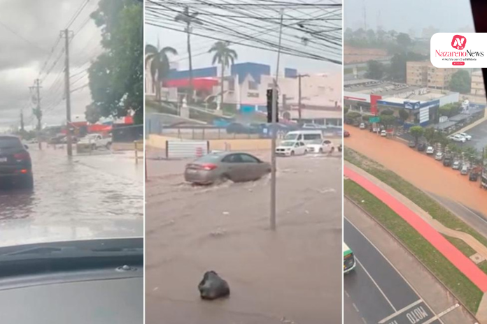 Vídeos recebidos pelo Gazeta digital mostram que na área central da cidade, próximo ao local onde recentemente começaram as obras do Transporte Rápido por Ônibus (BRT), as ruas ficaram alagadas e a enxurrada chegou as portas de comércios da região.