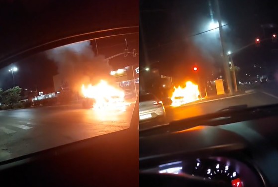 Um carro pegou fogo e ficou completamente destruído na madrugada de hoje (30) na Avenida Fernando Corrêa, no bairro Boa Esperança, em Cuiabá. Um vídeo que circula nas redes sociais mostra o momento em que as chamas consomem o veículo.