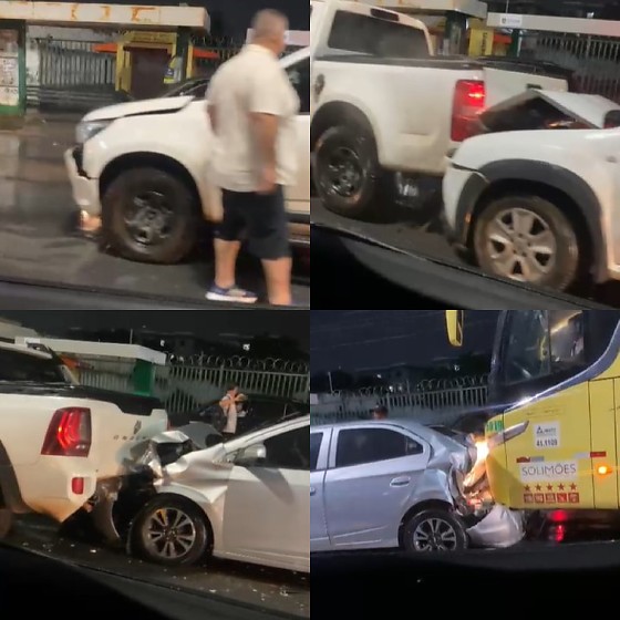 Um engavetamento envolvendo cinco veículos aconteceu na noite desta quarta-feira (3), na avenida Fernando Corrêa da Costa, em Cuiabá. No momento do acidente chovia, e ainda não há informações sobre feridos.