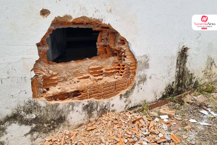 Conforme o resumo da ocorrência, criminosos abriram um buraco em uma das paredes do mercado, que foi escondido pelos ladrões com uma lona preta.