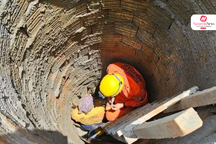 Segundo o Corpo de Bombeiros, a equipe foi acionada pela própria vítima, que estava consciente, e informou ter caído em um poço que estava sendo escavado para a construção de um reservatório de dejetos.