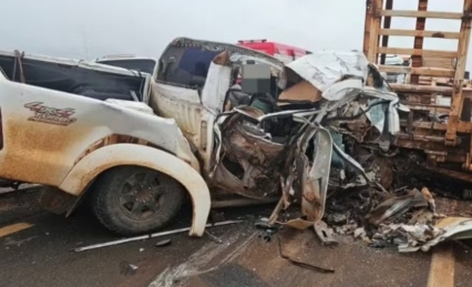 Motorista fica preso às ferragens em acidente entre caminhonete e caminhão na MT-140
