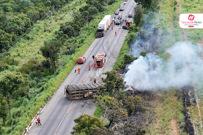 Informações preliminares apontam que o acidente envolveu uma carreta boiadeira e um carro de passeio modelo Fiat Uno. Com a força do impacto, os dois ocupantes do automóvel morreram ainda no local.