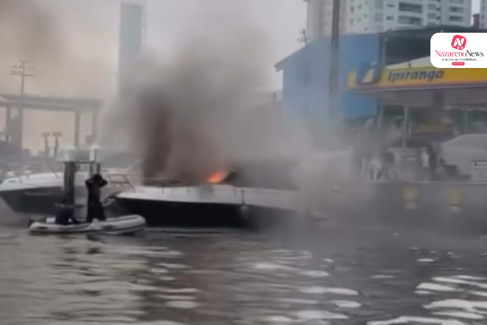 Imagens registradas no local mostram o momento em que o fogo consome grande parte do barco. Populares e integrantes da tripulação agiram rápido e conseguiram controlar o incêndio utilizando baldes com água e extintores antes que a embarcação fosse totalmente perdida.